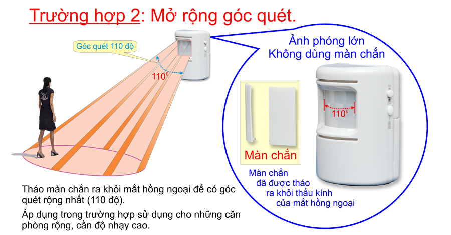- Khoảng cách của mắt hồng ngoại và chuông 30m~50m (tùy vật cản nhiều hay ít)