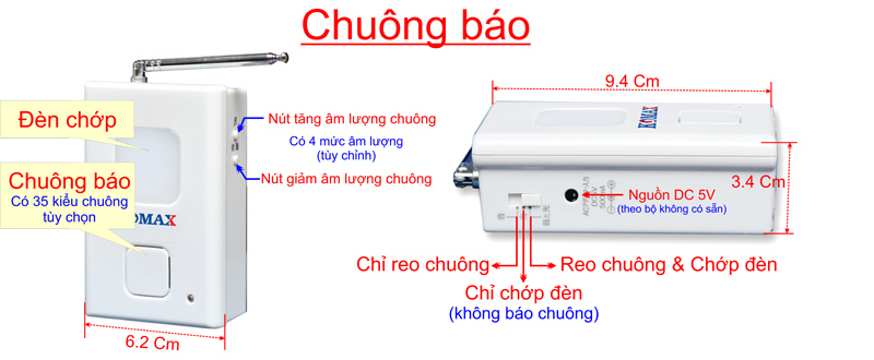 - Có 35 kiểu chuông báo.